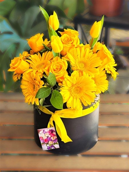 Canlı sarı laleler, zarif güller ve neşeli gerberalar bir araya gelerek sevdiklerinize pozitif ve unutulmaz bir hediye sunuyor.
